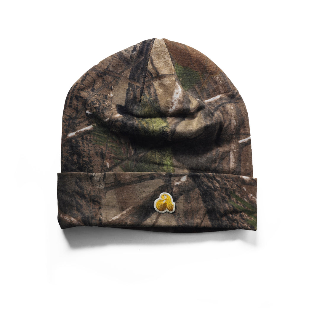 Tuque fabriquée en collaboration avec Realtree camo. Taille unique. Longueur sans revers de 10 ". L’avant du modèle arbore le logo Artgang en broderie agencée.