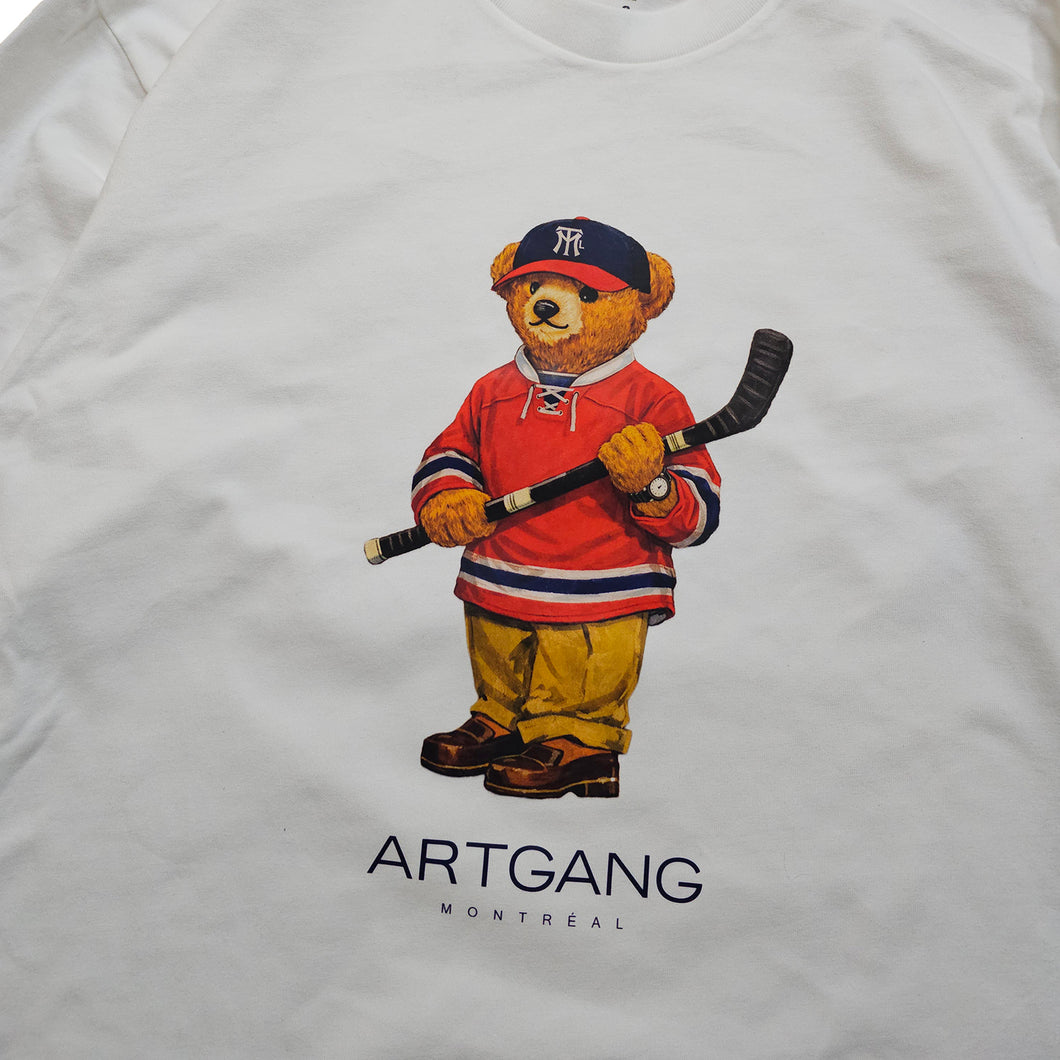 T-shirt à manches longues en coton avec l'illustration de l'ours Saint-Lo imprimé à l’avant. Matériel de poids extra-lourd.
